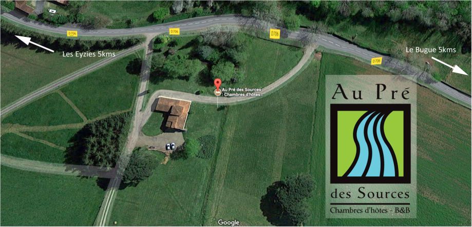 Autoroute A89 (sortie 16) direction Sarlat, traverser le Bugue et Campagne (D706) sur 500m jusqu'au lieu-dit Picharlou.